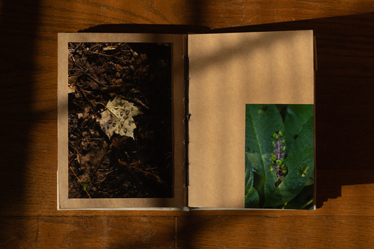 Between Earth and Sky takes inspiration from William Bartram's journals that he kept as a naturalist while travelling Cherokee trading routes through the western North Carolina region. Part journal meditating on the sensorial experiences of the trail, part reflection on a physical body changing due to chronic illness, this work combines photographs, illustrations, and personal writings to create an intimate artifact encapsulating time spent on the Bartram Trail.